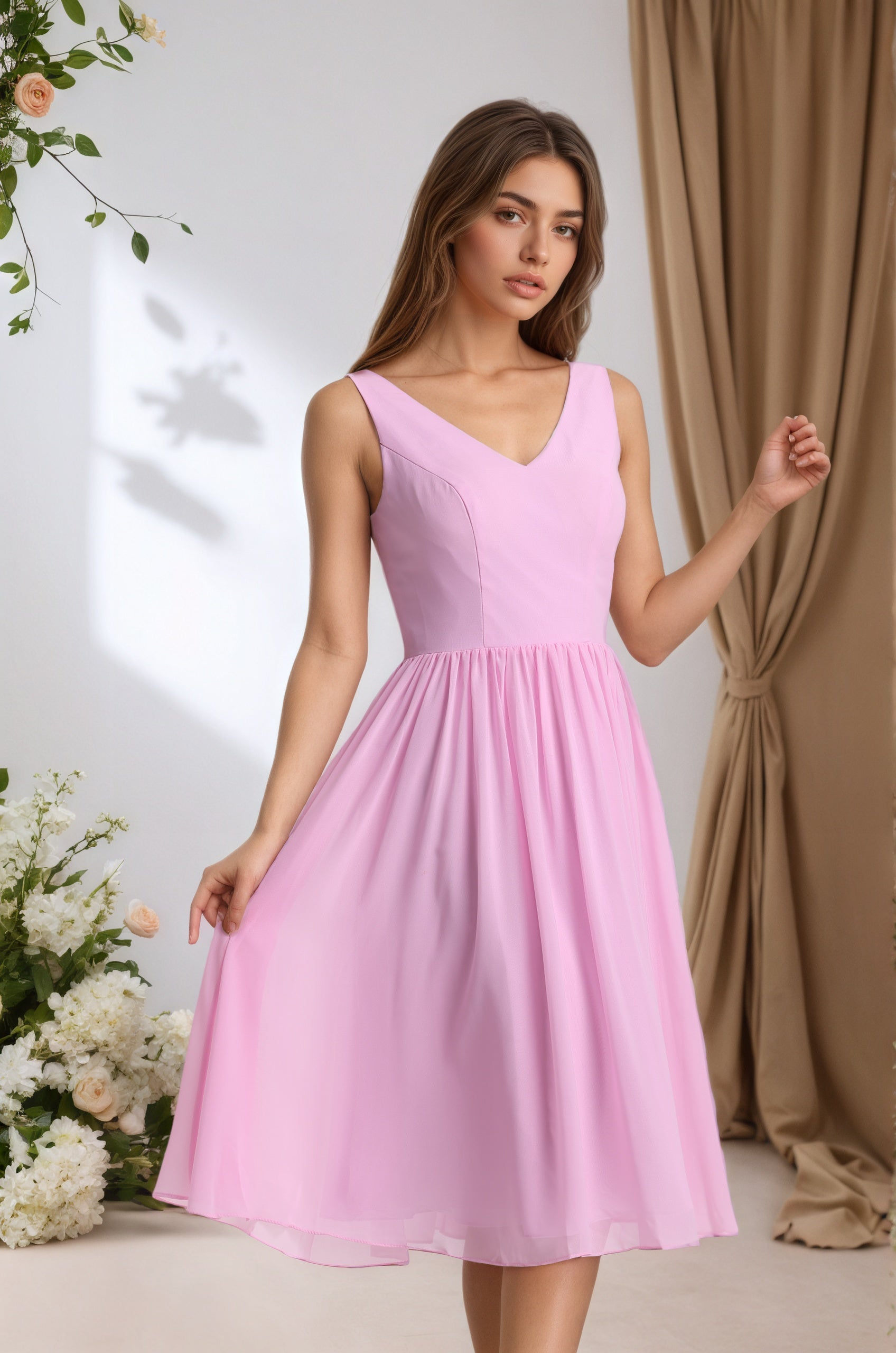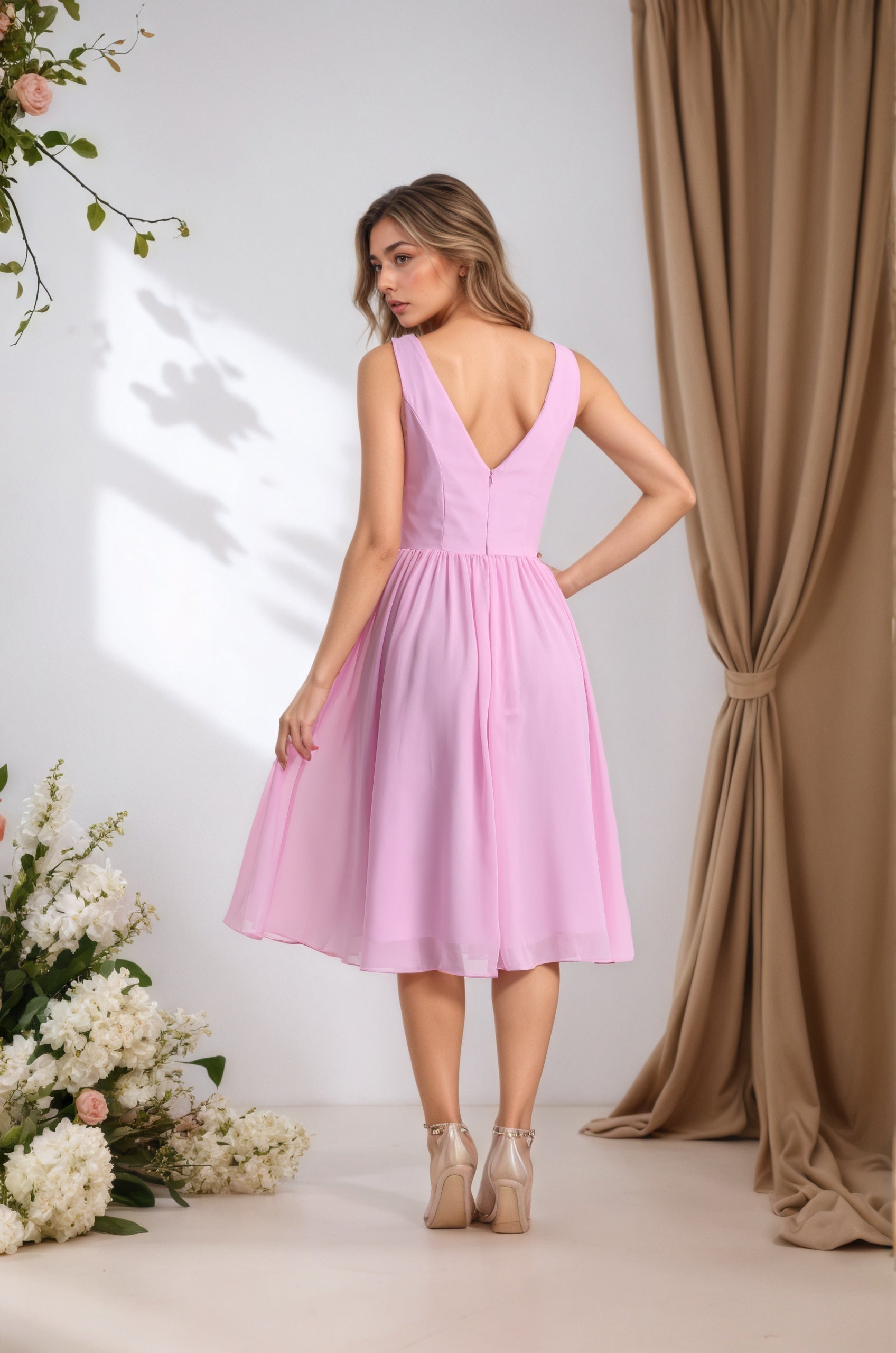 A-line V Neck Sleeveless Chiffon Bridesmaid Dress