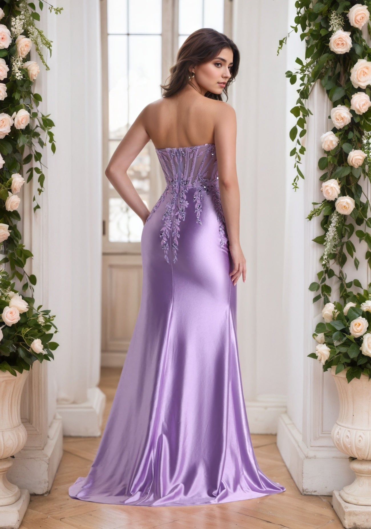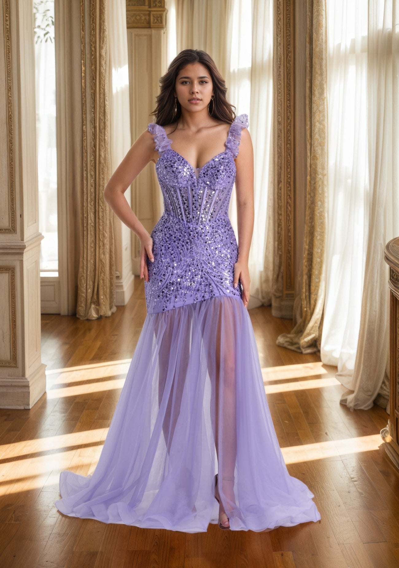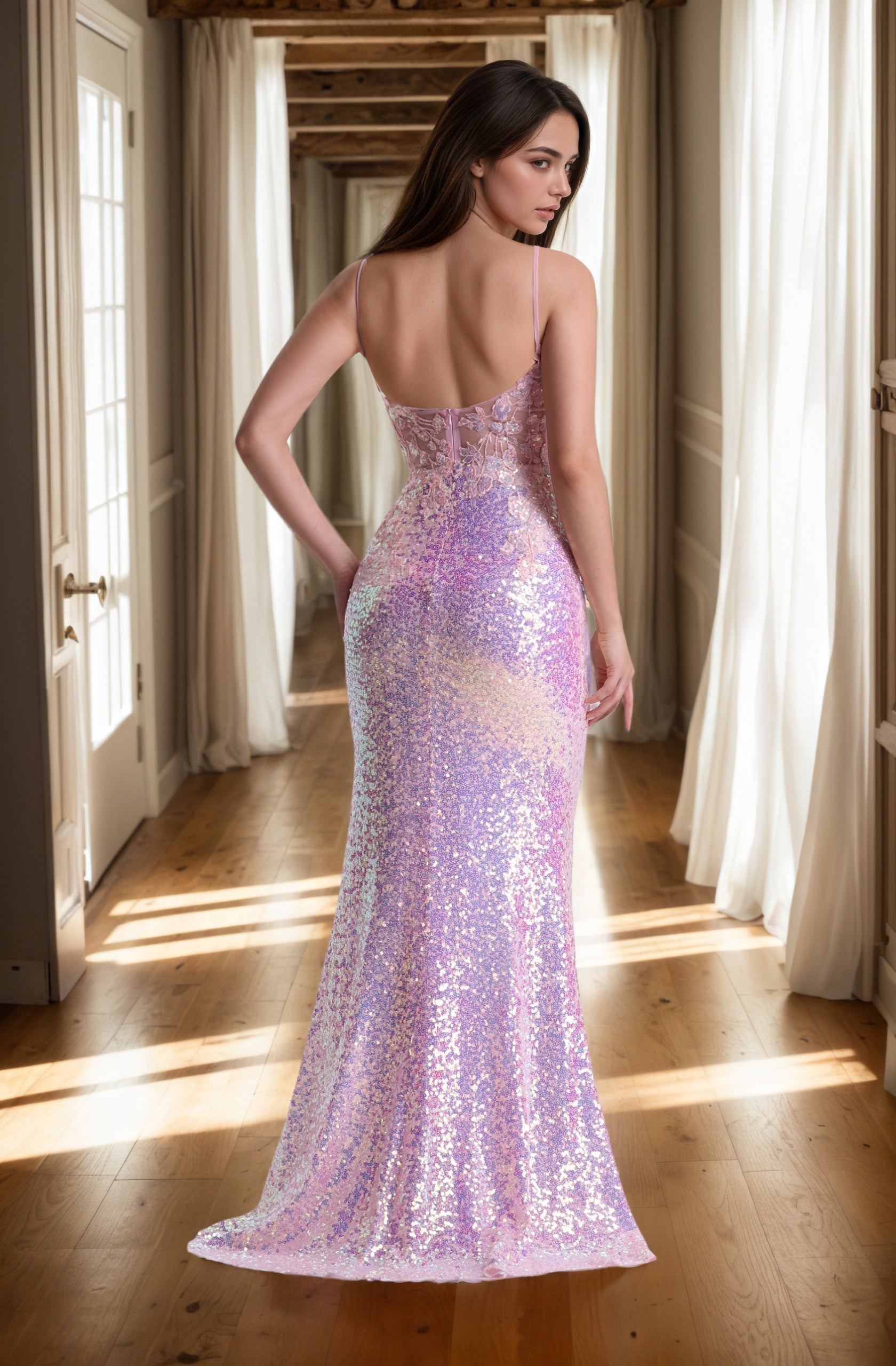 Purple Split Sparkling Sequined Lace Up Sexy Long Prom Dress