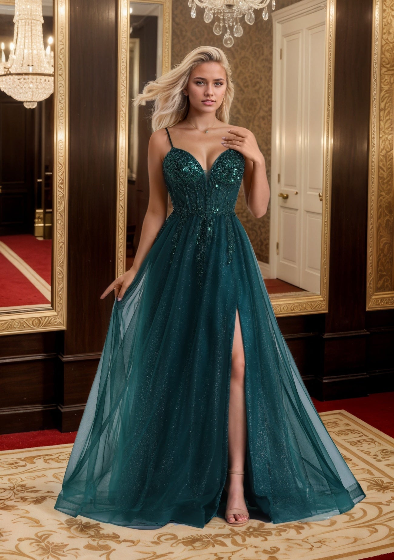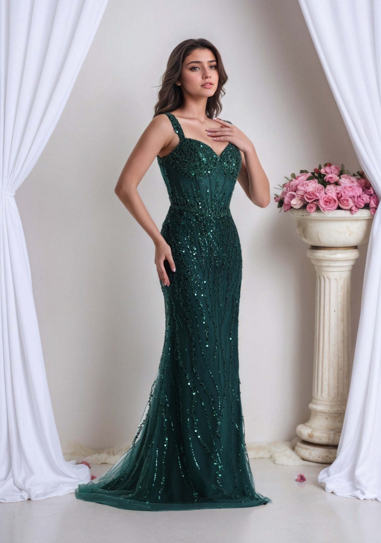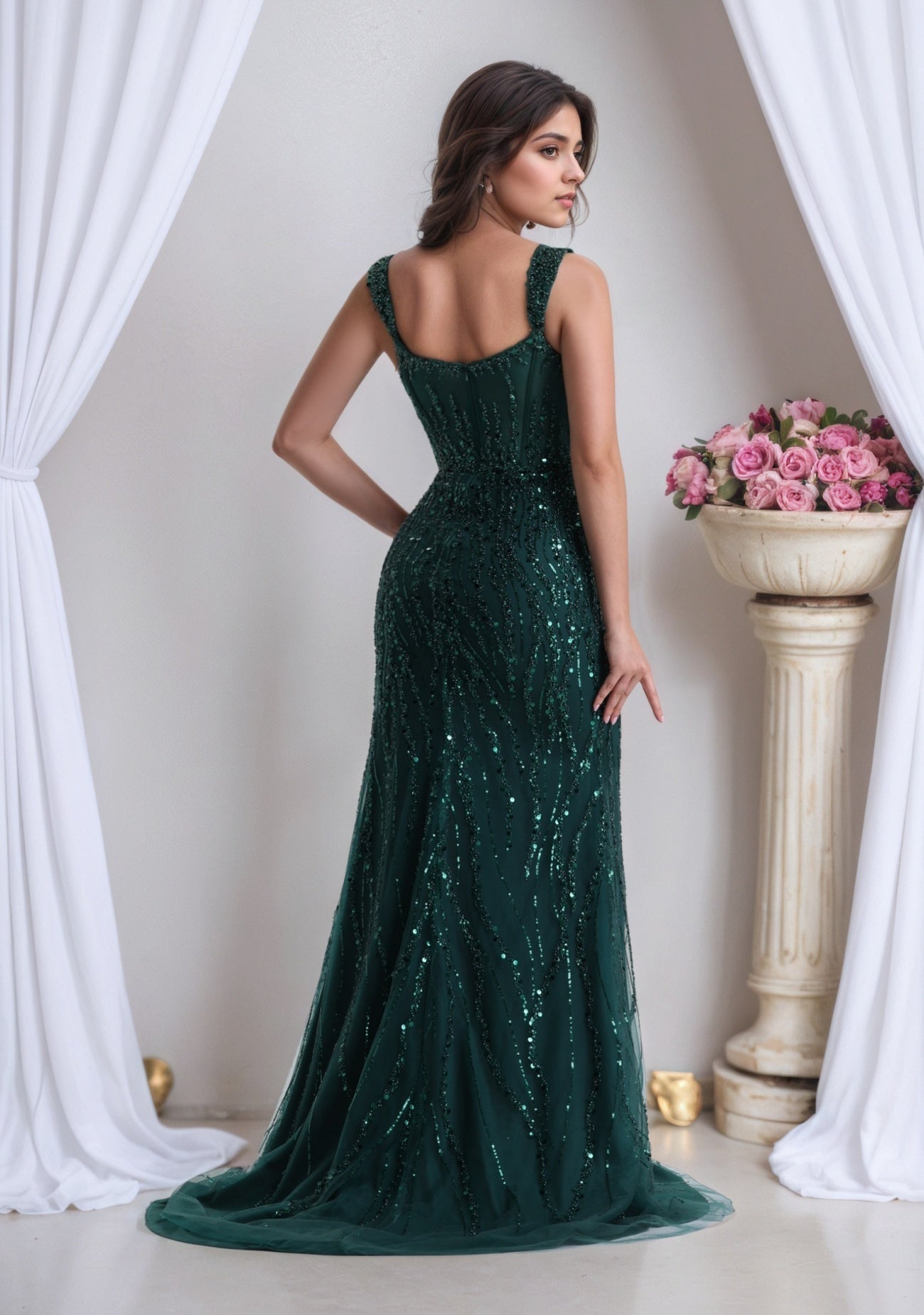 Emerald Green Split Sparkling Sequined Lace Up Sexy Long Prom Dress