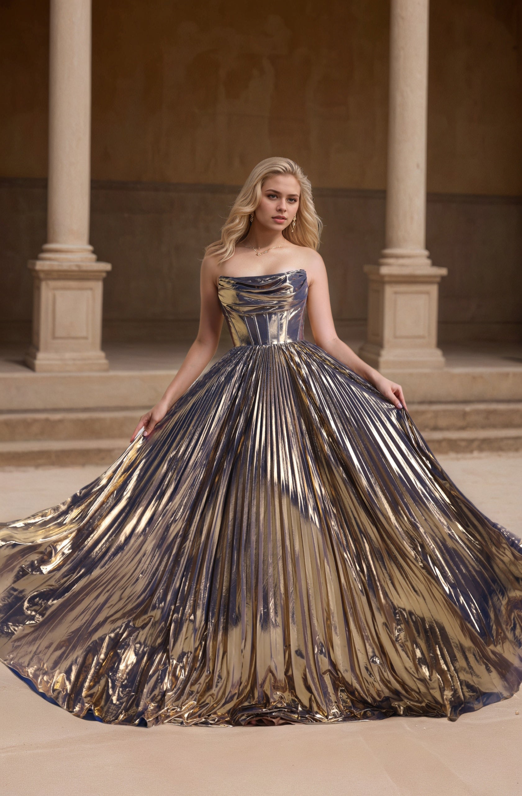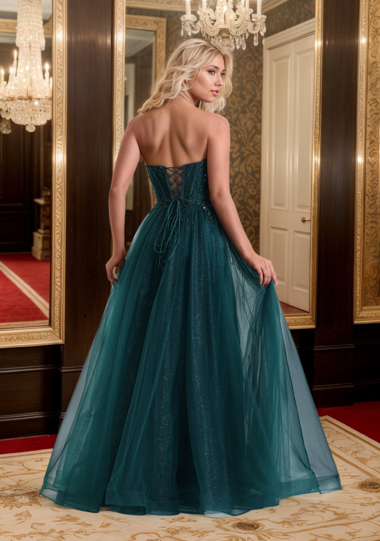 Metallic Shining Zipper Back Elegant Long Prom Dress