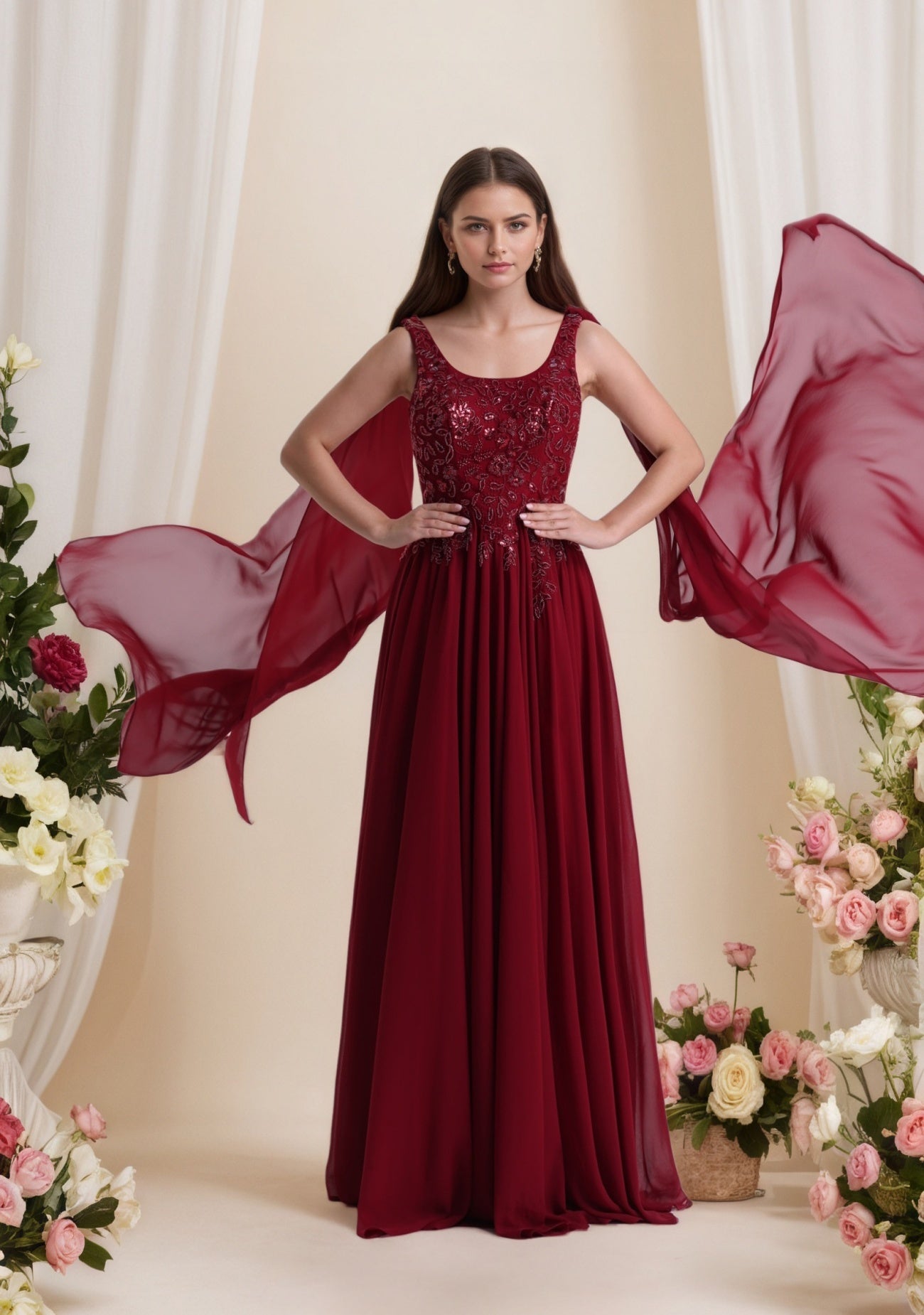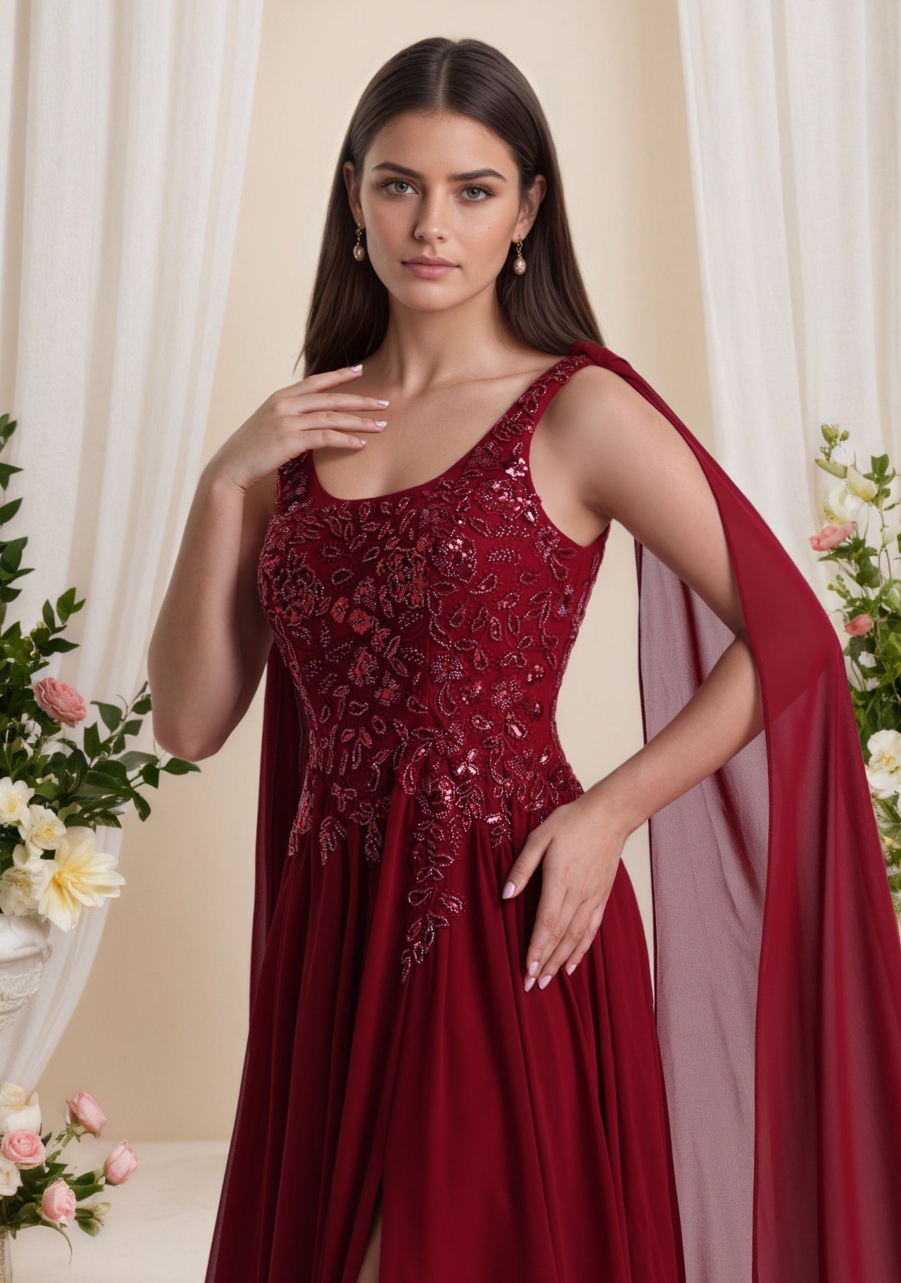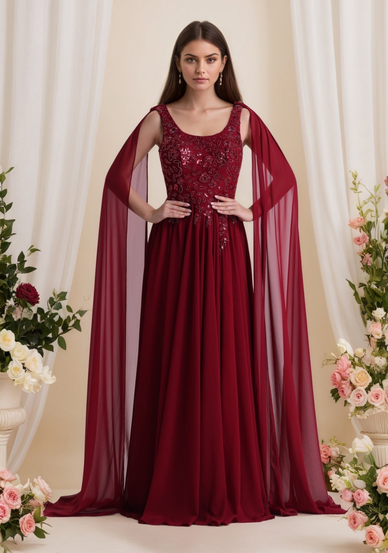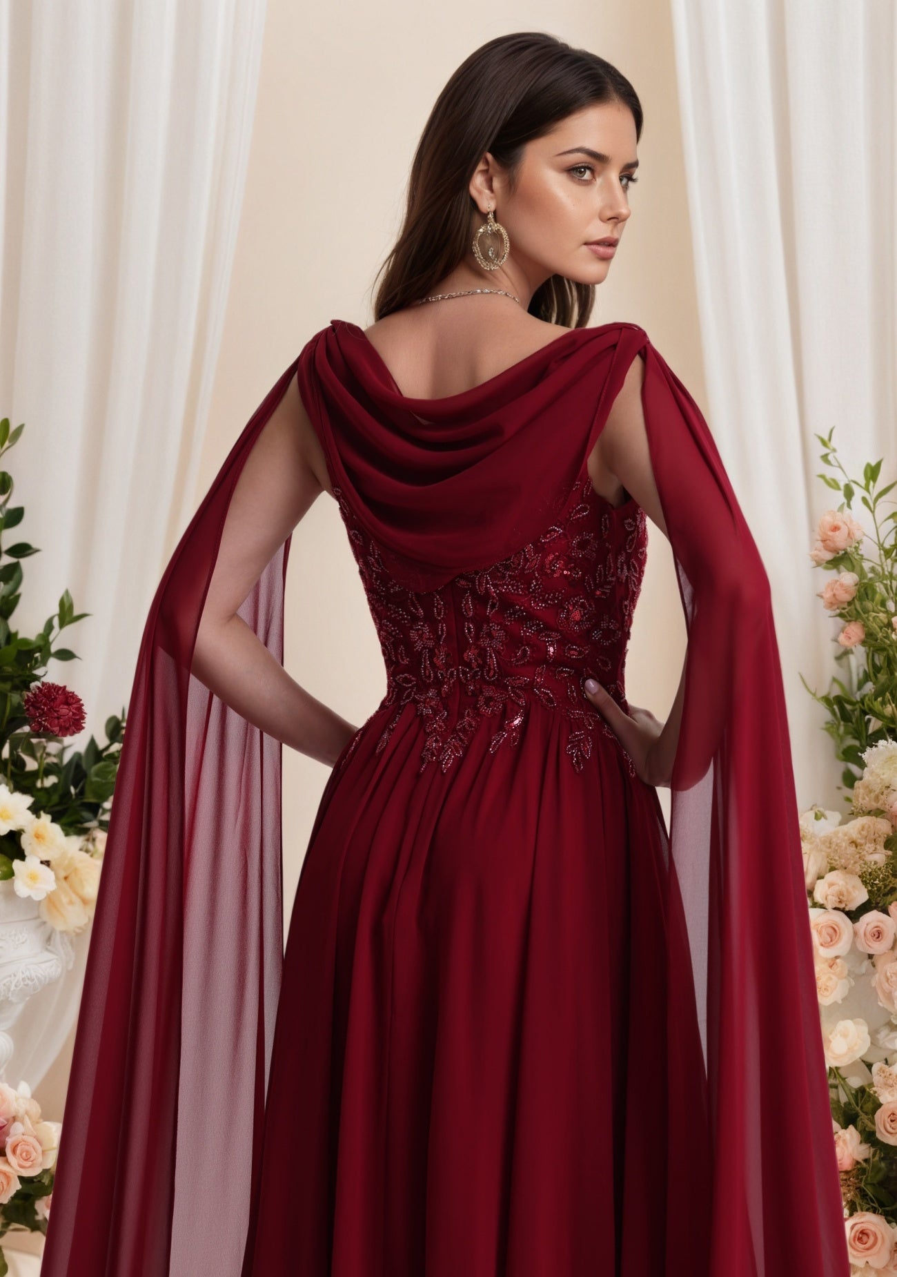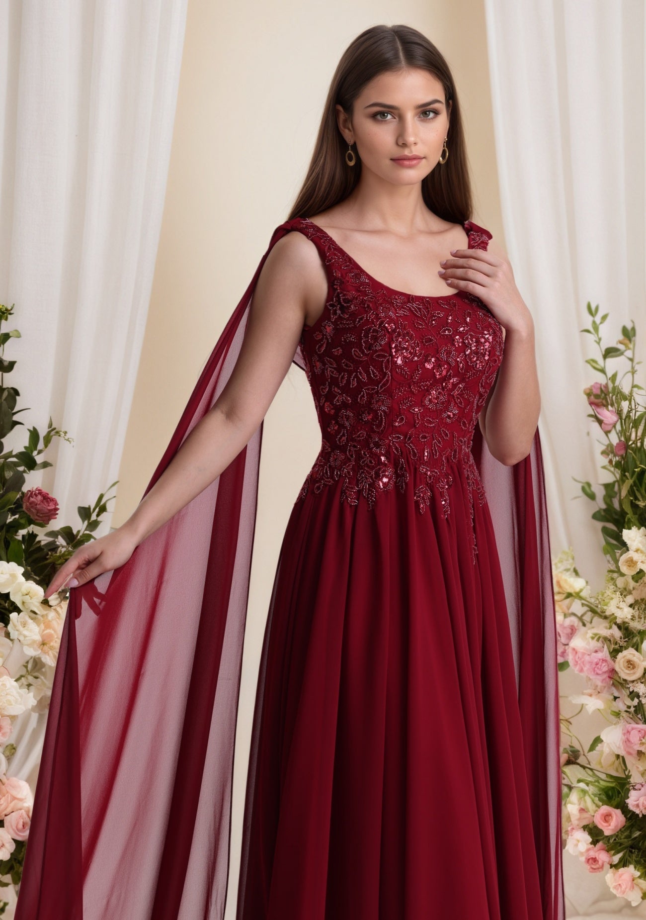 Burgendy Elegant Square Neck Zipper Back Elegant Evening Dress