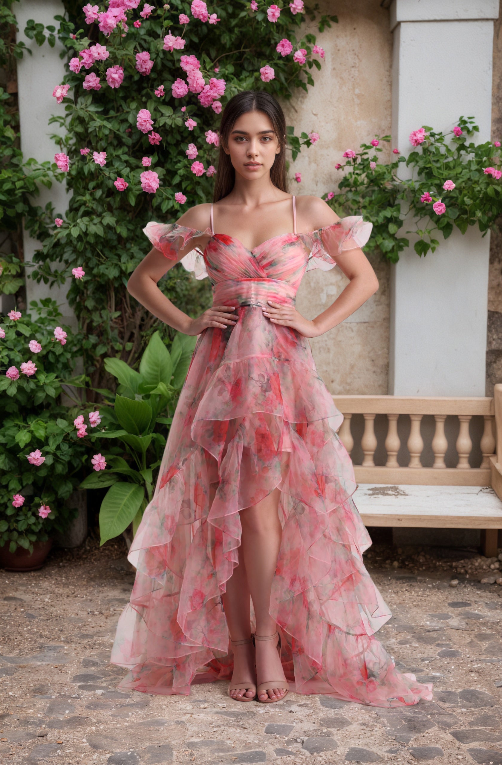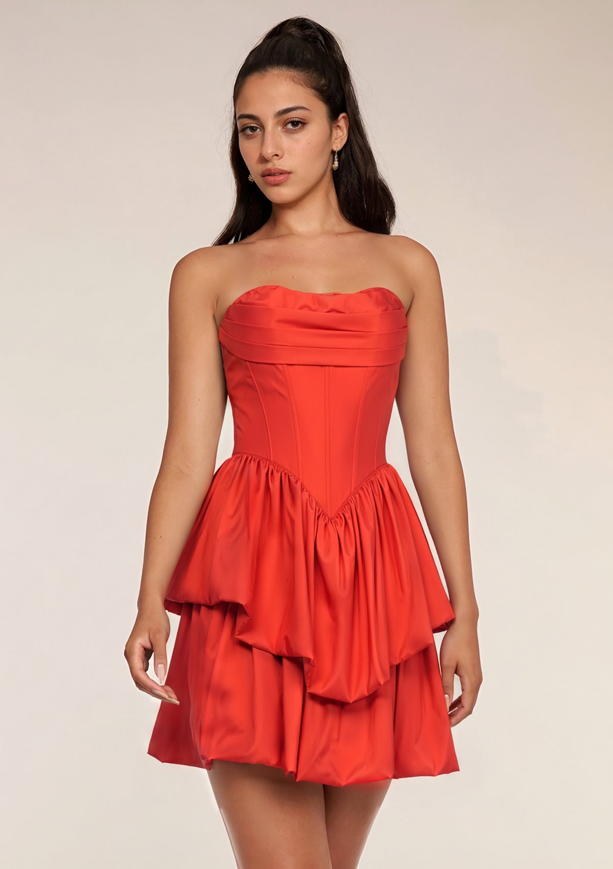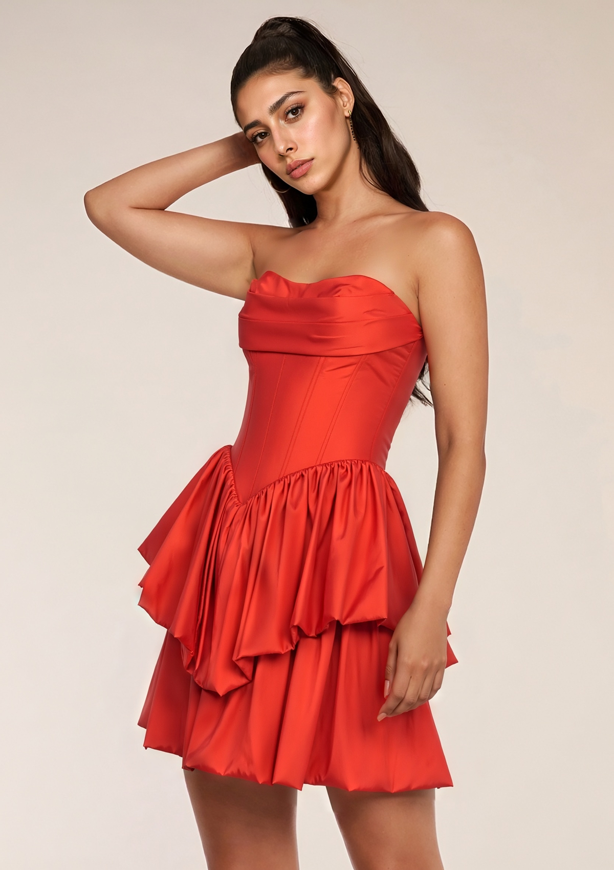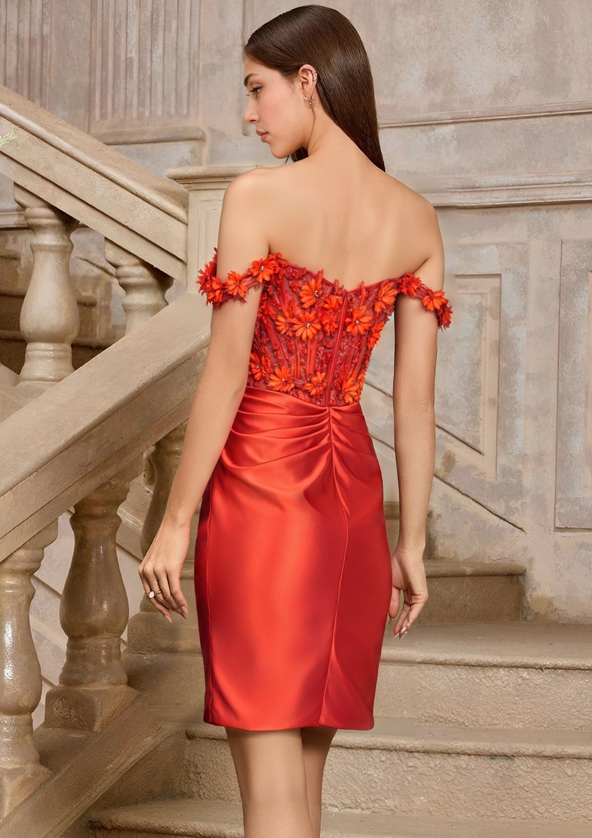 Red Off Shoulder 3D Flower Lace Up Homecoming Dress