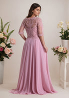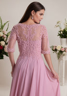 A-line Scoop Neck Half Sleeve Floor Length Chiffon Mother of the Bride Dress