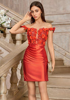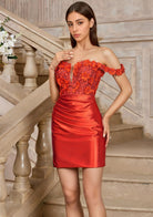 Red Off Shoulder 3D Flower Lace Up Homecoming Dress