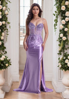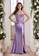 Purple Split Sparkling Sequined Lace Up Sexy Long Prom Dress