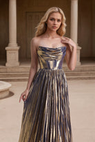 Metallic Shining Zipper Back Elegant Long Prom Dress