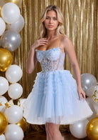 Sky Blue Sparkling Sequined Lace Up Homecoming Dress