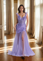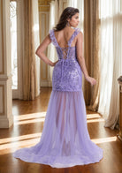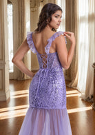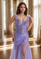 Purple Split Sparkling Sequined Lace Up Sexy Long Prom Dress