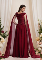 Burgendy Elegant Square Neck Zipper Back Elegant Evening Dress