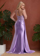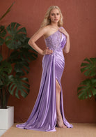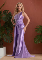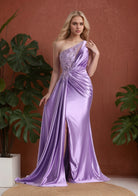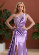 Purple Split Sparkling Sequined Lace Up One Shoulder Sexy Long Prom Dress