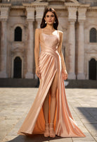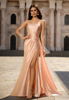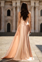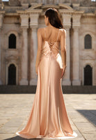 Champagne Satin Mermaid Prom Dress with Rhinestone Embellished Bodice & Lace-Up Back